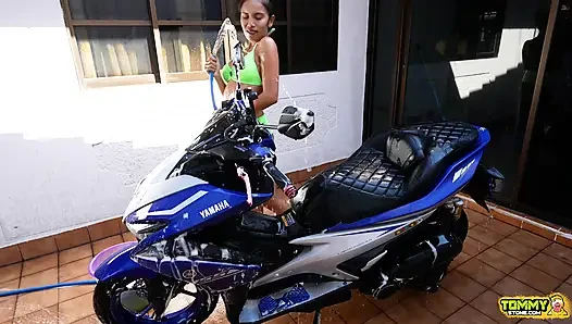 Hot Asian Teen Motorcycle Wash Nympho Creampie